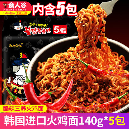 【韩国进口 三养超辣火鸡面 140g*5包 22.9元包邮】