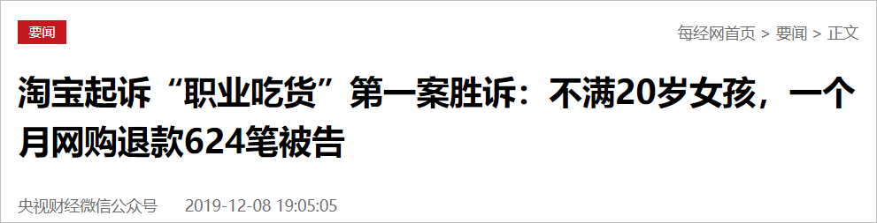 像这个女孩这样大量网购后申请退款不退货,把货物 “ 吃 ” 掉的人,就叫 “ 职业吃货 ” ,属于职业打假人的一种。