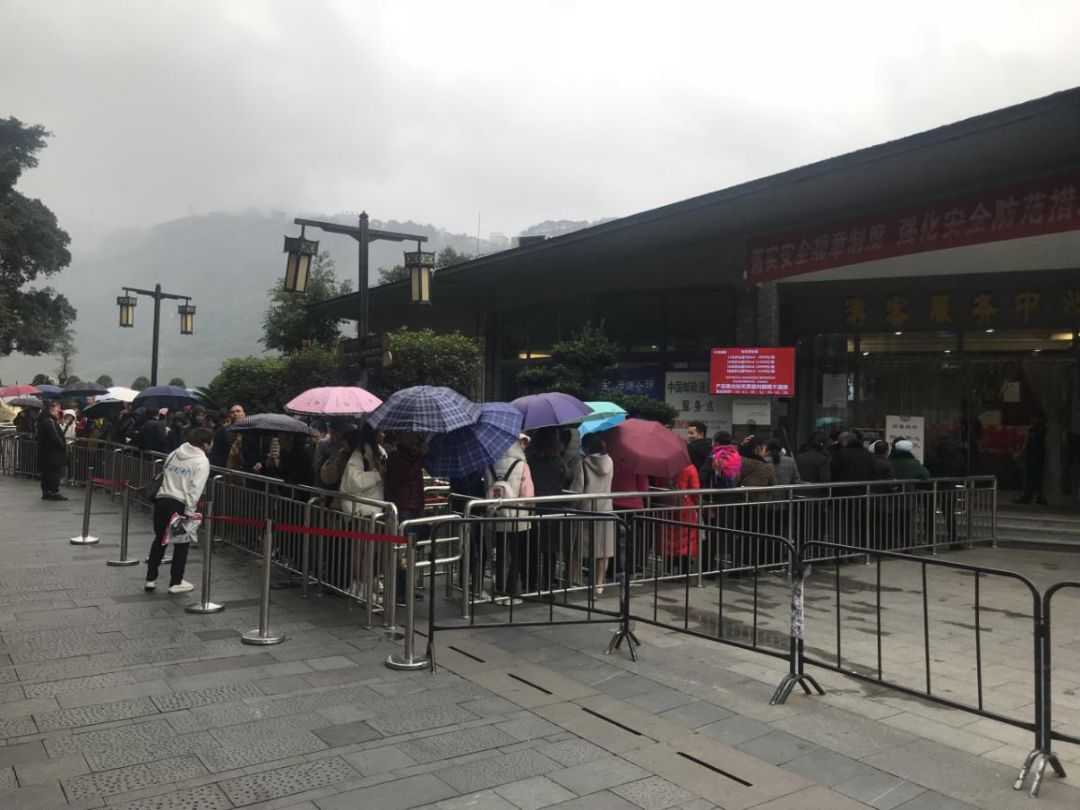 第三天也就是周一中午12点,《棱镜》第三次造访中国酒文化城,因为午休时间未到,《棱镜》和几个同样有备而来的游客提前占据了队头。当天,茅台镇气温骤降,山间雾气混杂着愁人的细雨,这种多变的湿冷天气据说培育了发酵茅台酒所必须的特种菌群。