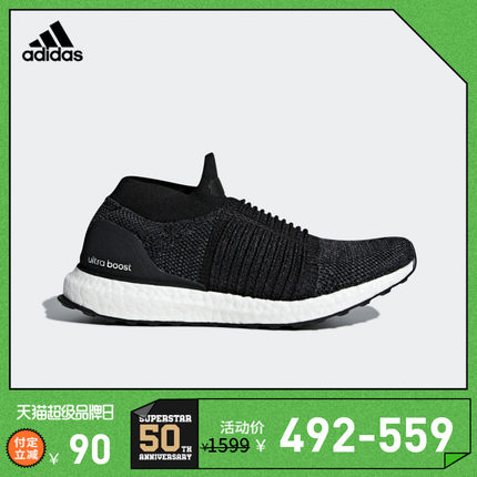 【阿迪达斯 UltraBOOST Laceless 中性款休闲运动鞋(黑色/粉色)新低372元包邮(定金¥60)】