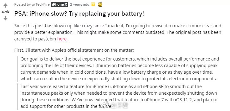 舆论在网上愈演愈烈,十天后,苹果不得不站出来做出说明:他们确实故意降低了旧手机的性能。