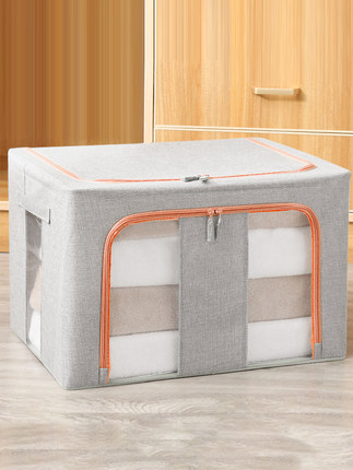 牛津布布艺,大容量~此款牛津布收纳箱,材质健康,安全无毒,防潮防霉,耐磨耐用;可视窗口设计,收纳物品一目了然,方便查找;可折叠,方便携带,闲置时也可折叠收起,不占地方;大容量收纳空间,可收装棉被、衣服、玩具、书籍等物品,方便实用。