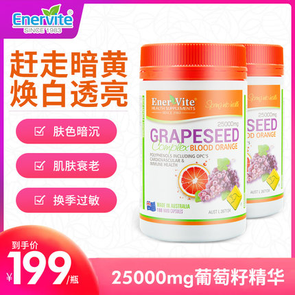 【白菜价!再降10元,1粒相当于普通款2粒 清自由基 180粒:澳大利亚 EnerVite 葡萄籽精华 券后29元包邮(京东198元)】