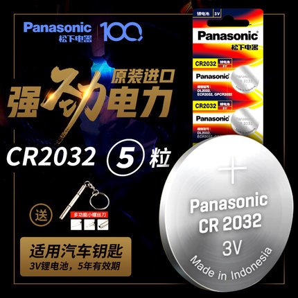 松下 CR2032 纽扣电池 3V 汽车遥控器电池 5粒 11.9元包邮