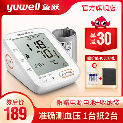 天猫鱼跃官方旗舰店219元,可领50元优惠券,实付169元到手,第一款非背光标准背带款此价,此外还有升级360°臂带版、充电款可选,略有差价。累计销量80万+,有18万的4.9高评分。旗舰店发售,品质靠谱,采用SOC芯片DFFA核心算法,通过上万次大规模临床数据采集,使算法可以匹配各种类型人群,适应性更强,测量结果更准确。随心测臂带,语音播报,背光大屏,一键检测,99组记忆,双人切换,臂带检测,赠电子体温计,4年联保服务,赠运费险、