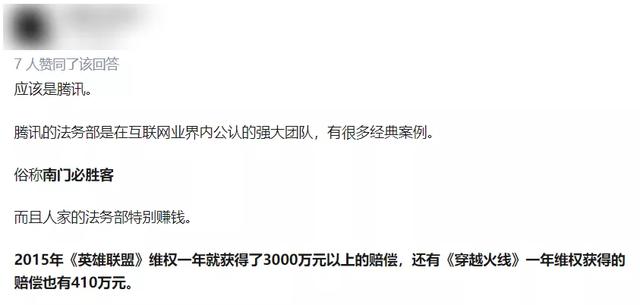 随手在互联网上一搜,就可以看到腾讯法务部留下的传说:每年打官司几千万的收入,貌似还没输过。