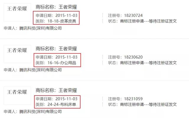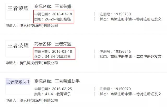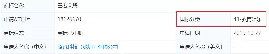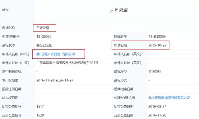 事实上,腾讯早在 2015 年就已经注册了「 王者荣耀 」商标。