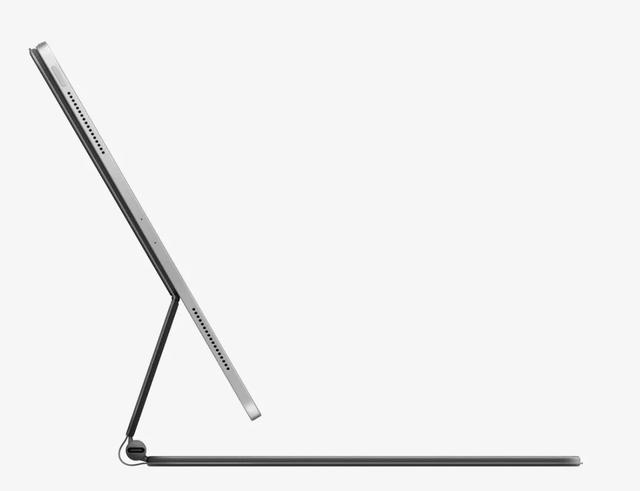 另外就是这个专门为新 iPad Pro 设计的妙控键盘,咱们先不说它有多妙,这个外观看着还是不错的,悬浮式设计从侧面看真的觉得 iPad Pro 像是一个小 Mac。