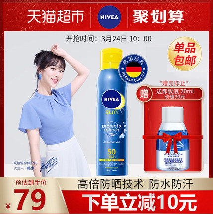 这款妮维雅 隔离防晒喷雾。德国原装进口,男女可用,采用德国隐形防晒技术,防晒指数SPF50+ PA+++有效保护肌肤免受UVA和UVB的伤害。天猫超市89元,下单立减10元,可领20元优惠券,实付59元到手;送妮维雅卸妆水。