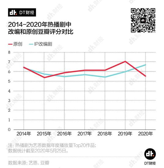 从2014年到2020年5月的6年半里,140部热播剧中共有90部改编自IP作品,包括网络小说、游戏改编、韩剧翻拍等,其中又以网络小说改编为主。