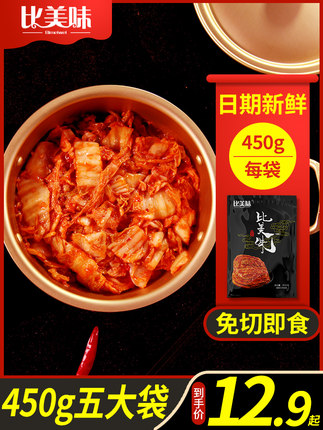 正宗韩式辣白菜,6月新产日期新鲜,破损包赔。目前天猫商城比美味旗舰店450g*3袋售价¥12.9,可使用¥5优惠券,实付¥7.9包邮,夏季开胃解腻下饭好物。