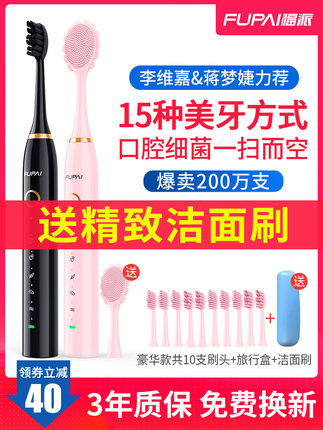 【FUPAI 福派 A6 plus 成人声波电动牙刷 1主机+5个刷头 3色新低43元包邮】