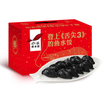 青岛美食有三宝,啤酒海鲜鱼水饺”,船歌鱼是青岛的代表性鱼水饺。不少明星、美食家都光顾过船歌鱼水饺,蔡澜、董克平、黄渤、黄磊、霍建华等等都是船歌的座上客。船歌鱼水饺曾蝉联天猫双11水饺类目三连冠,同时被收录在舌尖3《生应时食物的“四季”》。此款为纯手工墨鱼睡觉,精选野生墨鱼,选用墨鱼桶装鱼身制馅,出肉率40%,有着独特的墨鱼汁面皮,3斤以上的野生墨鱼,选取40%口感超好的部分入馅,配上少许韭菜提鲜,一口咬下去,鲜嫩多汁。礼盒包装,送人自食都不错。
