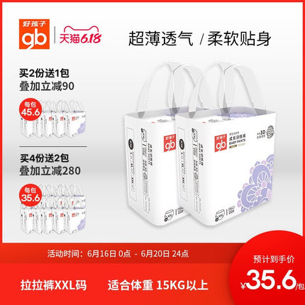 【发2大包!】【好孩子旗舰店】大品牌,囤货了!难得开券!!XXL码拉拉裤!内外加柔,超薄透气,自由穿裆,舒适宽腰,加宽透气弹力腰围,活动更自在,呵护小淘气的屁屁~