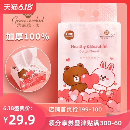 【洁丽雅·兰 x LINE FRIENDS联名款 一次性洗脸巾 70抽*3包 24.9元包邮 (29.9-5)】