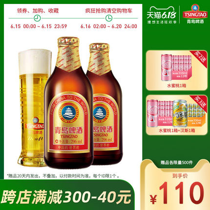 青岛啤酒官方旗舰店, 13-20日 天猫618大促, ¥112元 狂欢价 ¥336元 拍3件, -50元优惠券(手机端商品页价格下方领), -40元 (每满300减40元)跨店满减, -20元没事购物券(手机端价格下方领) =226元 到手价; 优惠券数量有限,先领在说,仅限用一张,编辑已下单。 囤货好价 拍3件还送 水蜜桃310ml*12听+汉斯菠萝啤330ml*12听