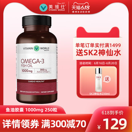 【美国进口,给心脑加油:250粒 美维仕 深海鱼油软胶囊 欧米伽3 券后79元包邮】
