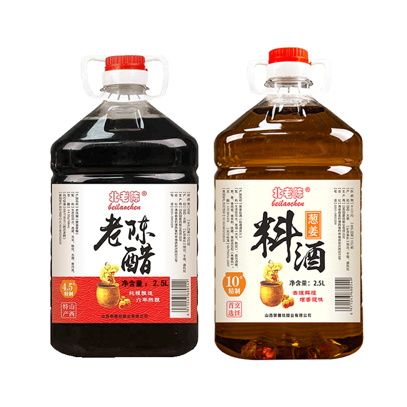 【北老陈 山西葱姜料酒老陈醋粮食酿造 5斤陈醋+5斤料酒 14.9元】