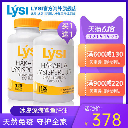 全球鲨鱼鱼肝油产品唯一获得诺贝尔奖的保健品,冰岛原装进口国宝级品牌!天猫Lysi海外旗舰店售价378元,买1送1,点此领取30元优惠券,叠加每满300-40跨店满减,实付308元包邮,折合154元/瓶。冰岛LYSI(利思利喜)集团在全球范围内销售高品质的鱼油产品,在冰岛乃至全世界很多国家,LYSI(利思利喜)的产品一直是上到总统下到普通民众熟悉并长期食用的高级鱼油食品,冰岛80年的国宝级品牌。这款Lysi 冰岛原装进口角鲨烯深海鱼油软胶囊,120粒装,每粒500mg内含100mg AKGS活性成分,原料取自冰岛深达1200~2200米的鲨鱼肝脏提取,纯净无污染,独有的高含量AKGS活性成分鲨鱼鱼油也就LYSI一家可以生产。可有效增强免疫力,补充多种人体所需元素。抗氧化抗衰老。