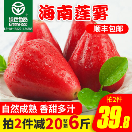 【海南新鲜当季莲雾果带箱6斤 需拍2份,券后29.8元顺丰包邮】