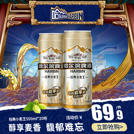 哈尔滨 啤酒小麦王 550ml*20罐,哈尔滨啤酒小麦王,泡沫特别浓厚,入喉畅快,喝一口就难忘!夏天到了,放冰箱冷藏后再喝,那滋味爽极了~赶紧囤起来吧!哈尔滨啤酒旗舰店领券拍下49.9元包邮
