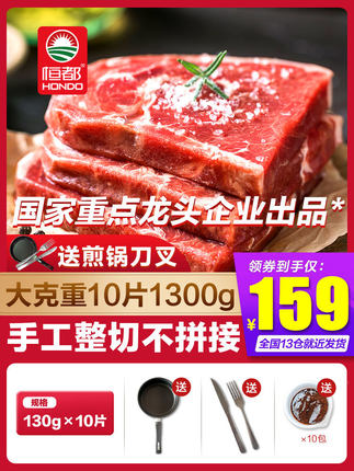 【希菲 整切西冷牛排套餐 到手1000g/10片 拍2件109元包邮】