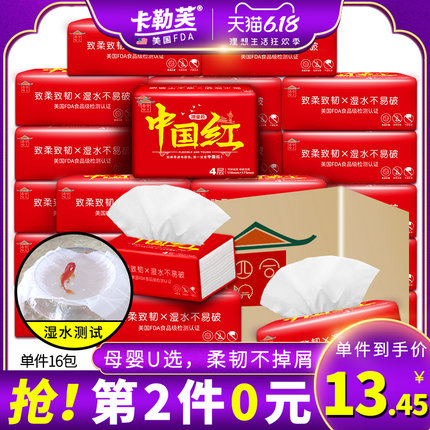 天猫卡勒芙旗舰店41.99元,可领15元优惠券,第二件0元,拍两件实付26.99元到手2套32包(1箱发货)。纸张大小为175*118mm,价格便宜,质量靠谱。这款纸巾经过美国FDA食品级标准检测、中国卫生监督认证、企业AAA级信用等级认证等多项认证,使用俄罗斯进口原生木浆制作,擦脸、擦汗、擦餐具不留痕,干湿两用不易破,质地柔软,触感好。