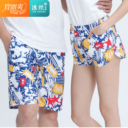 【宜而爽 情侣款速干印花家居裤/沙滩裤*2件19.9元包邮(9.9元/件)】