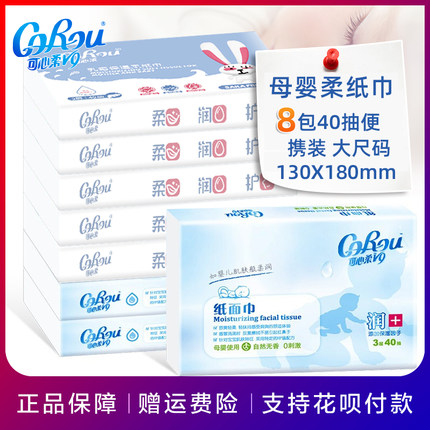 【可心柔 V9 婴儿柔润保湿抽纸 3层40抽8包 立减+券后14.9元包邮】