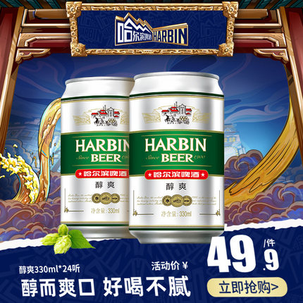 【哈尔滨啤酒 醇爽9度 330ml*24听 39.9元包邮】