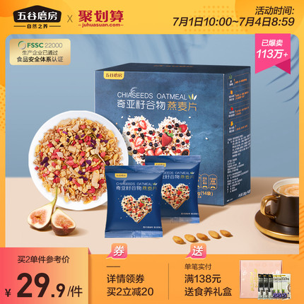 【五谷磨房 奇亚籽谷物水果燕麦片 20g*14袋 券后24.9元包邮 (39.9-15)】