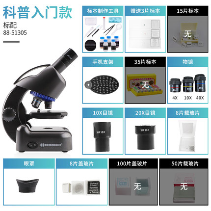这款显微镜天猫商城Bresser旗舰店售价¥189,入门款此价(第1款),可领取¥30优惠券,券后实付¥159包邮,含全套标本制作工具及手机支架,收藏加购送小迷宫,另有其他型号可选,价格略贵。