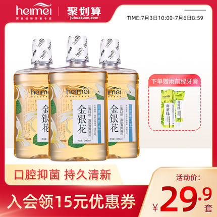 【黑妹 金银花漱口水300ML*3瓶 +赠 雨前绿牙膏 立减+券后14.9元包邮 (29.9-5-10)】