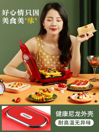 【格立高早餐机可定时温控,可替换烤盘,耐高温无异味】吐司烘烤,轻轻一压,美味呈现。操作简单,自动完成!原创轻食料理机,高颜值,方便好用,做个三明治华夫饼,开启你营养美味的一天!