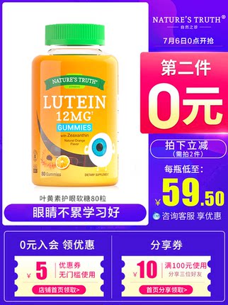 【美国进口、预防近视:80粒x2件 自然之珍 叶黄素护眼软糖 券后99元包邮】