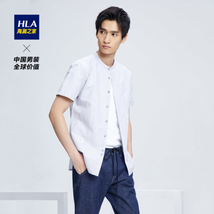 【海澜之家 男士棉麻休闲短袖衬衫 HNECJ2E052A 63元包邮】