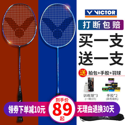 【国际羽总指定品牌 victor 钢铝合金羽毛球拍 2只 89元包邮 赠羽毛球+手胶】