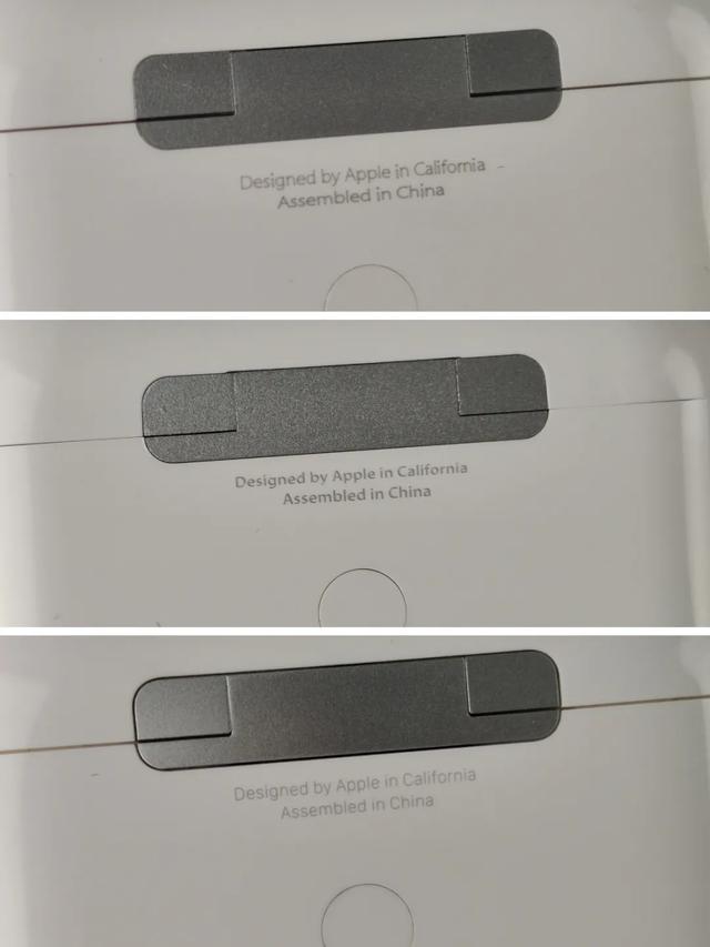 除此之外,三台耳机背面的 “ Design by Apple in California ” 刻字也存在着略微的不同,仔细观察的话,你会发现每台耳机使用字体都不一样。