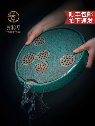 【莲蓬茶盘陶瓷储水干泡茶台圆形中式功夫茶具套装 263元(需用券)】