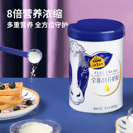 【8倍浓缩 800g/罐 认养一头牛 全脂高钙奶粉 券后99.9元包邮】