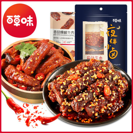 【百草味 川香麻辣牛肉干100g*2件21.8元包邮(双重优惠,拍2件)】