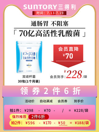 【双歧杆菌+乳寡糖 日本 30包 三得利 成人益生菌 券后168元包邮】