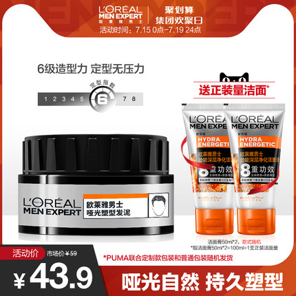 【L’OREAL 欧莱雅 男士哑光塑形发泥70g 送洗面奶50ml*2支 38.9元包邮】