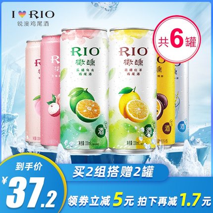【锐澳 Rio 3°微醺果茶鸡尾酒 6口味 330ml*6罐 37.2元包邮】