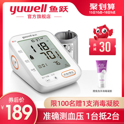 鱼跃 臂式 电子血压计,随心测臂带,语音播报,背光大屏,一键检测,99组记忆,双人切换,臂带检测。 鱼跃官方旗舰店领券拍下169元包邮