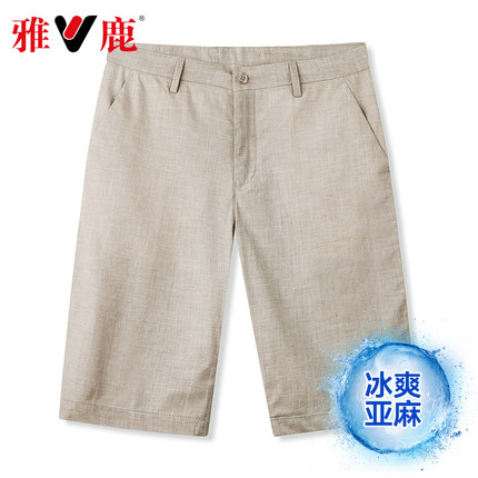 【雅鹿 男士冰丝亚麻混纺 休闲五分裤 YKK拉链 59元包邮】