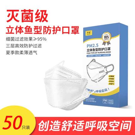 【韩国KF94级医用三层防护口罩 立体鱼型防护口罩 50片 34.9元包邮】