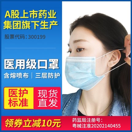 折合不到4毛1个的医用口罩,刚需可囤,执行标准号为YY/T0969-2013,粤潮械应急备20200009。目前50个装天猫商城时尚坐标家居专营店售价¥69.9,可叠加¥50优惠券,券后实付¥19.9包邮