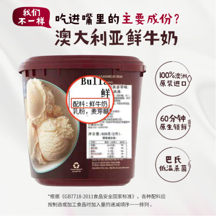 【澳洲进口 Bulla 鲜奶冰淇淋 2L 新鲜乳品含量超70% 118元包干冰运输】