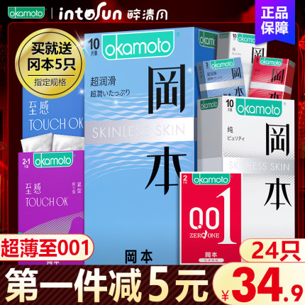 【冈本 肤感超润滑+激薄 避孕套组合24只 拍2件48片29.9元包邮】